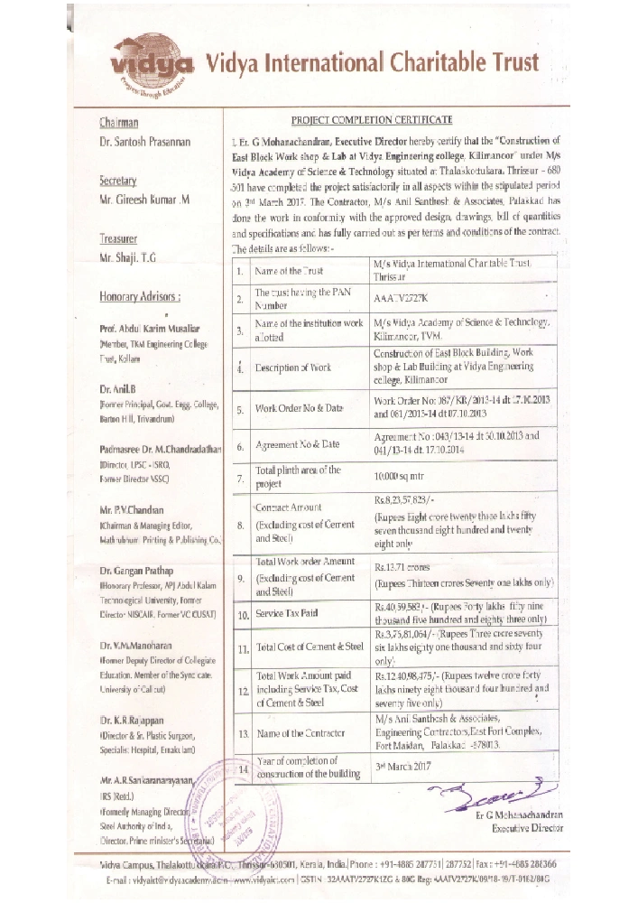 13 Vidya International Charitable Trust, Thrissur